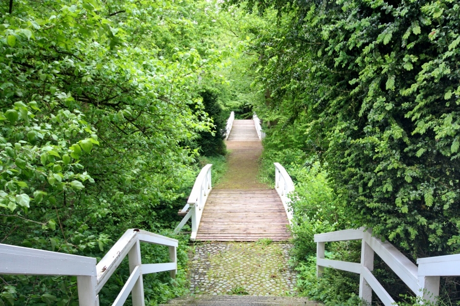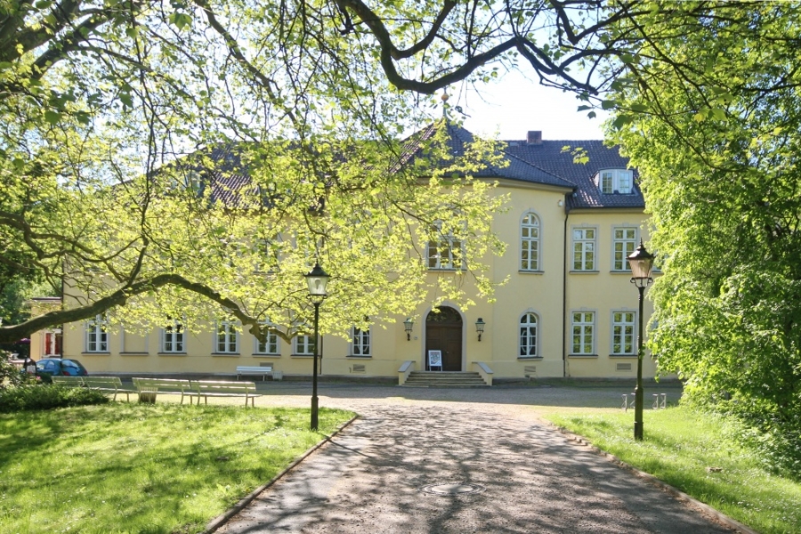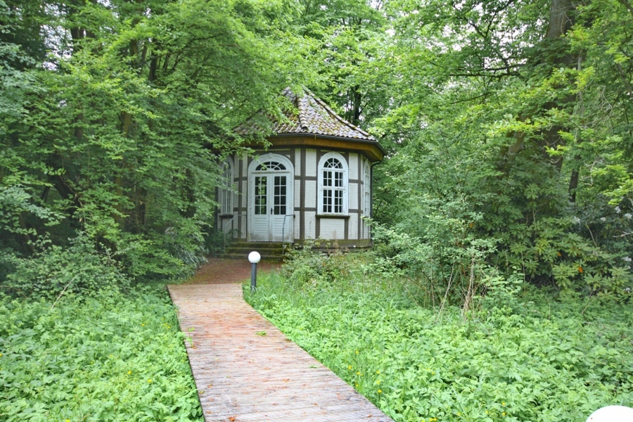 Ruhige Parkanlage mit altem Baumbestand am Ortsrand einer bekannten Kreisstadt im östlichen Niedersachsen.