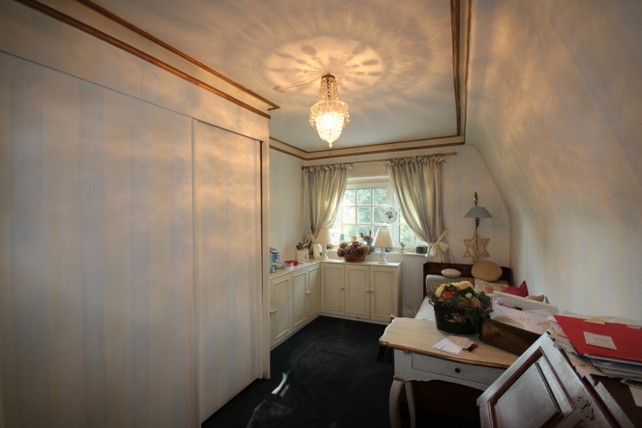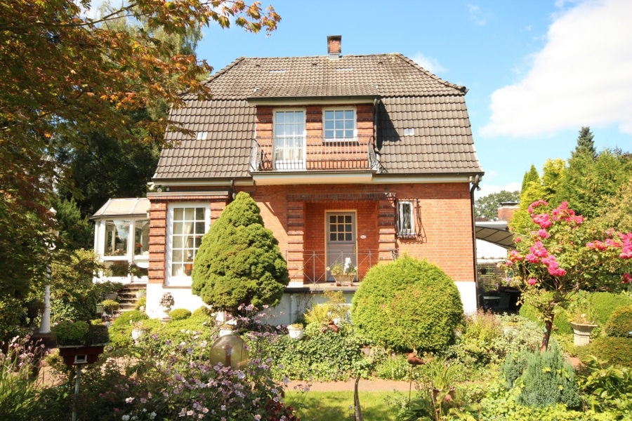 Das Gebäude wurde 1922 in konventioneller Bauweise errichtet und Ende der 80iger wurde ein beheizter Wintergarten angebaut. Die alten Dielen sind aus dem Reinbeker Schloss und grau/weiß im Rombenmuster gestrichen.